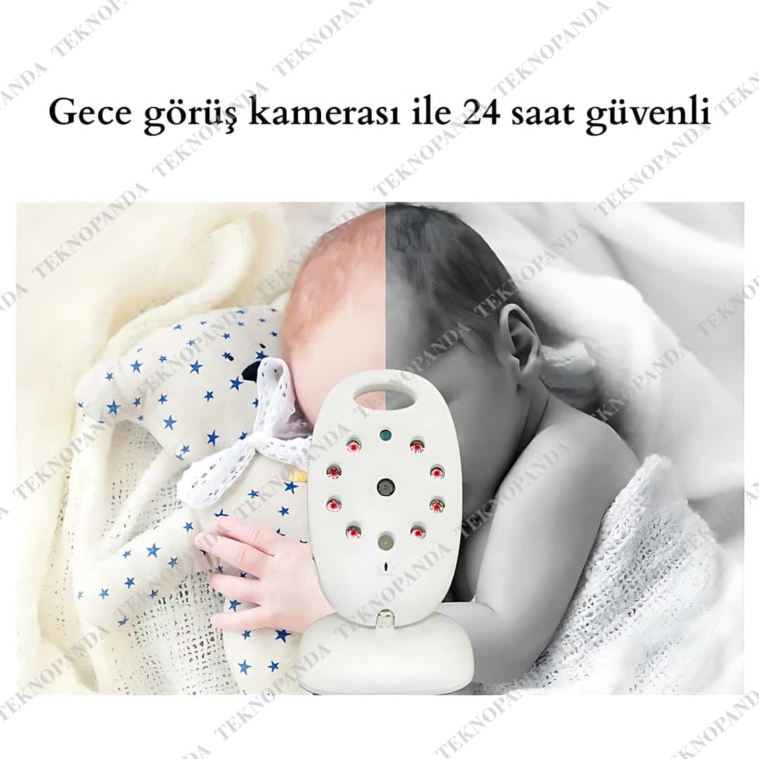 Bebek kamera ünitesi, üzerinde bulunan 8 adet yüksek yoğunluklu kızıl ötesi LED’ler sayesinde otomatik olarak gece görüşü imkanı sağlar. Bu sayede bebeğinizi karanlık bir odada uyurken dahi net olarak izleyebilirsiniz.
